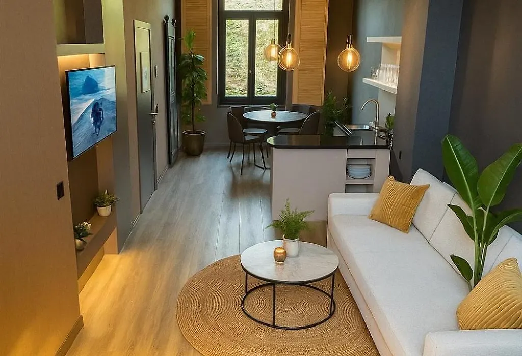 Deze accommodatie omvat een flatscreen TV met satellietzenders, comfort zoals strijkfaciliteiten en airconditioning, en veiligheidsvoorzieningen zoals rookmelders. Dit appartement is ook ingericht met een bank. De accommodatie heeft 1 slaapkamer met donzen kussens. 1 badkamer heeft een apart toilet en een douche, en moderne gemakken zoals een haardroger en badlakens.